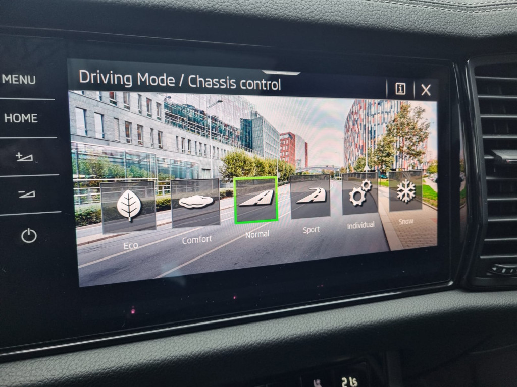 - Adaptívny podvozok DCC s výberom jazdných režimov (Eco, Comfort, Normal, Sport, Individual) + Offrad režim